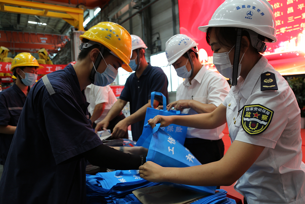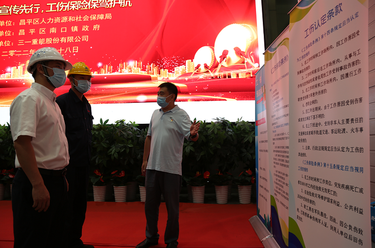 7月28日,昌平区2022年工伤保险普法宣传暨“工伤保险伴你同行—工伤保险进车间”主题宣传日活动在三一集团重能公司举行。
