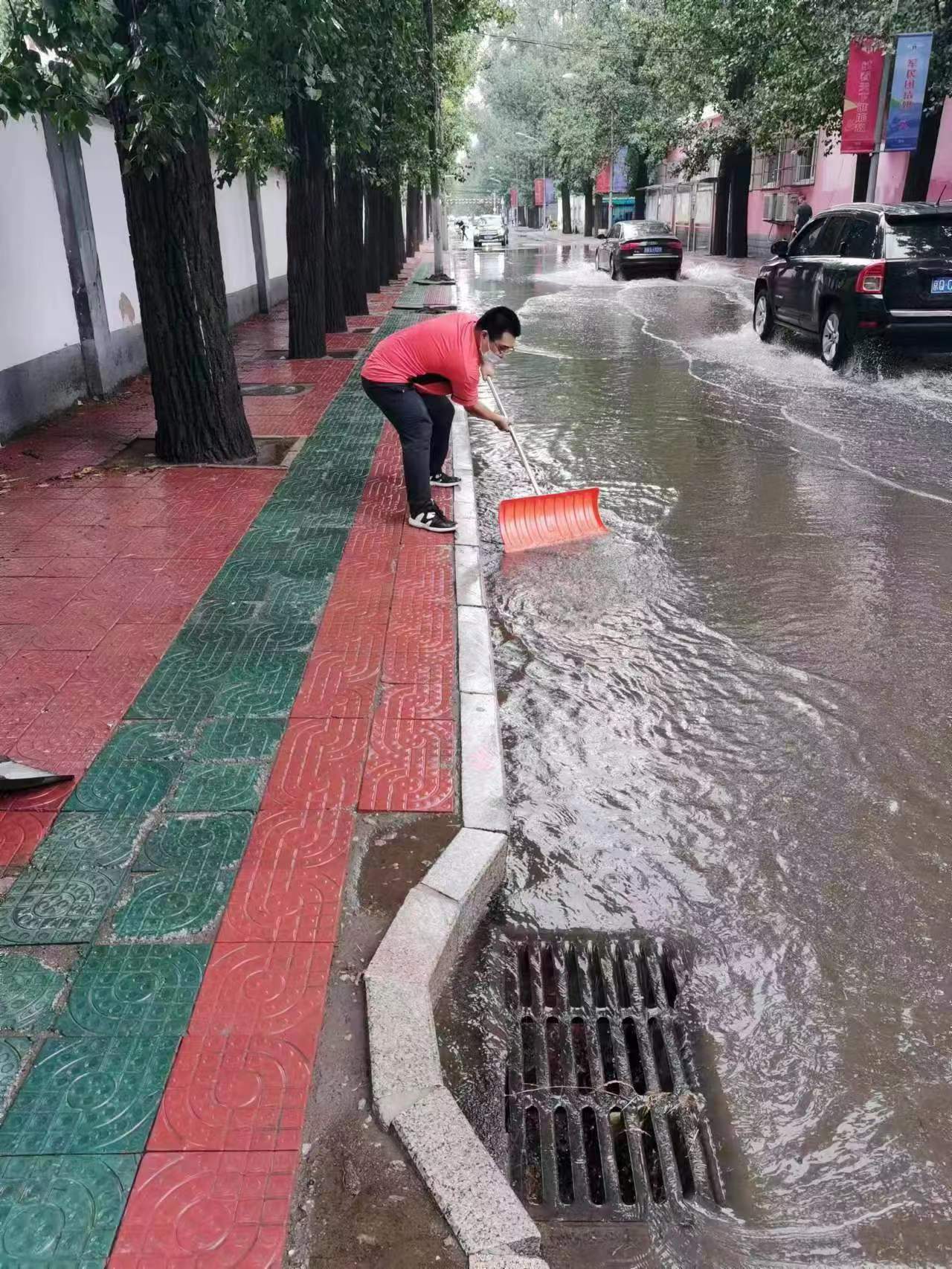 晚上10点多,新华里71号院居民反映,由于近期雨势大,院门口路面特别容易造成积水,影响正常出行,赶紧联系社区帮忙清理。