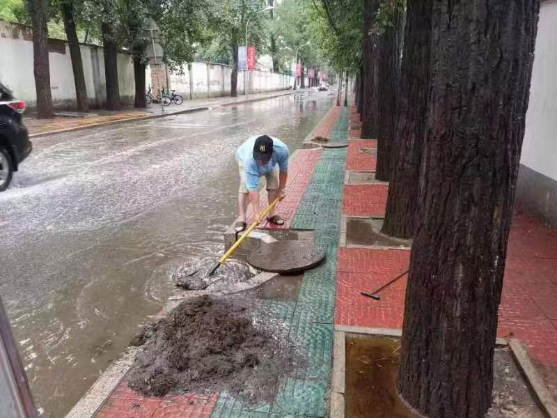 抢险队工作人员抵达后,对现场情况进行初步勘察,发现现场积水路段50多米长,最深处30公分深,针对辖区蓝天怡景小区门前出现排水不畅,影响居民出行的问题,街道紧急协调小区物业,迅速调配抽水泵作业,并对积水点及周边区域的雨水篦子进行统一清掏。经过两个小时的努力,积水点得到疏通。
