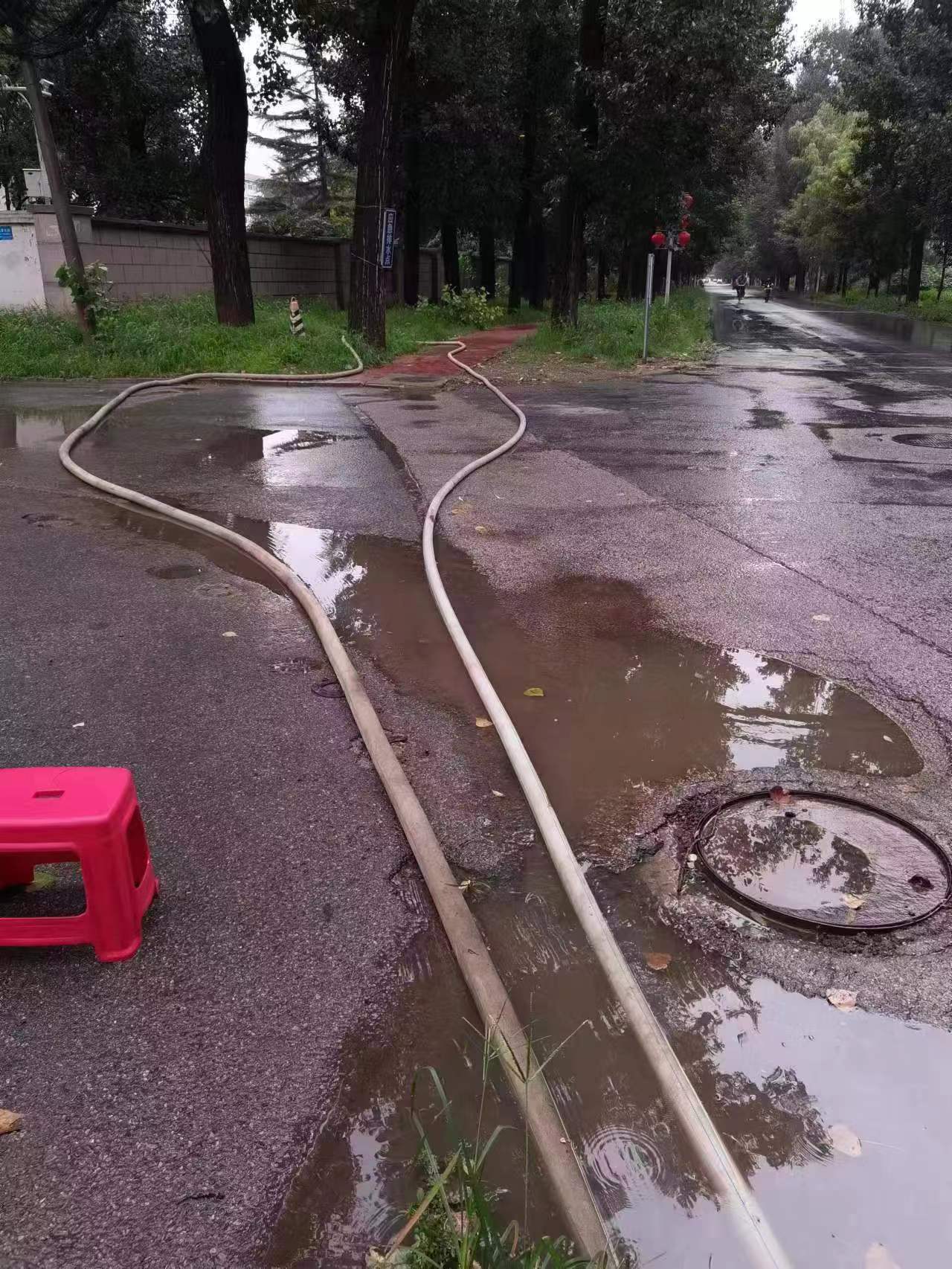 为保障居民雨天通行安全,解决该处点位积水问题,抢险队工作人员立即开始作业,紧急协调排水车抽排积水,经过多个小时的连续作业,使新华里71号院道路积水压力得到缓解,保障周边居民正常通行。