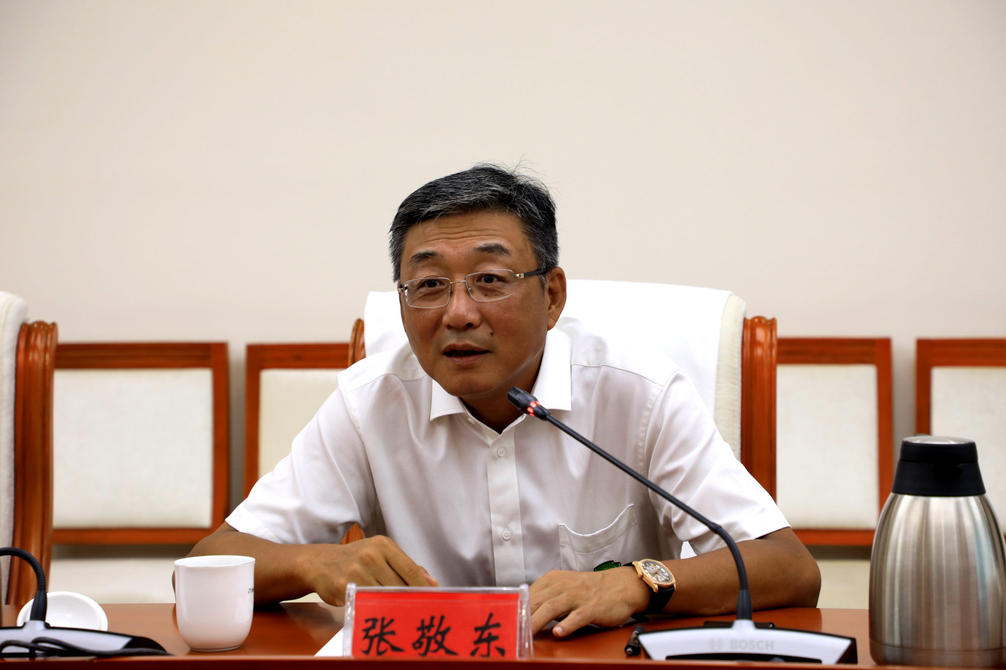7月27日,门头沟区委书记金晖与国奥集团董事长张敬东进行座谈。