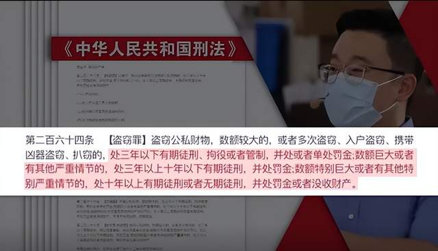 现场,中国政法大学徐然教授指出,根据《中华人民共和国刑法》,多次盗窃的,处三年以下有期徒刑、拘役或者管制,并处或者单处罚金;数额巨大或者有其他严重情节的,处三年以上十年以下有期徒刑,并处罚金;数额特别巨大或者有其他特别严重情节的,处十年以上有期徒刑或者无期徒刑,并处罚金或者没收财产。