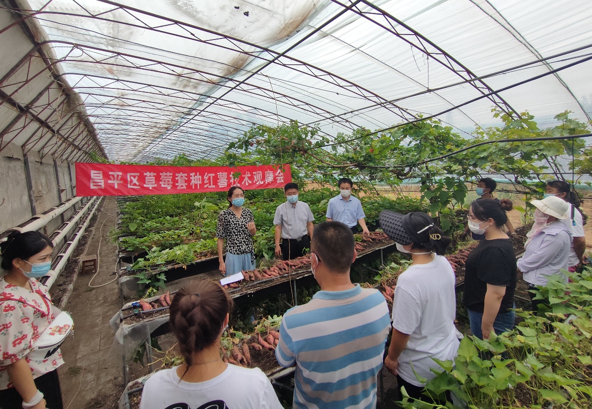 在市农业技术推广站、市特色作物创新团队的大力支持下,自今年3月起昌平区农业技术推广站在全区范围内的488栋草莓温室持续推广草莓套种红薯高效种植模式,共累计发放红薯苗68.4万株。昌平区农业技术推广站农艺师雷伟伟告诉记者,通过草莓套种红薯,可以实现每栋草莓温室在草莓种植之余,额外收获1200到1500斤的红薯,为农户增收6000余元。