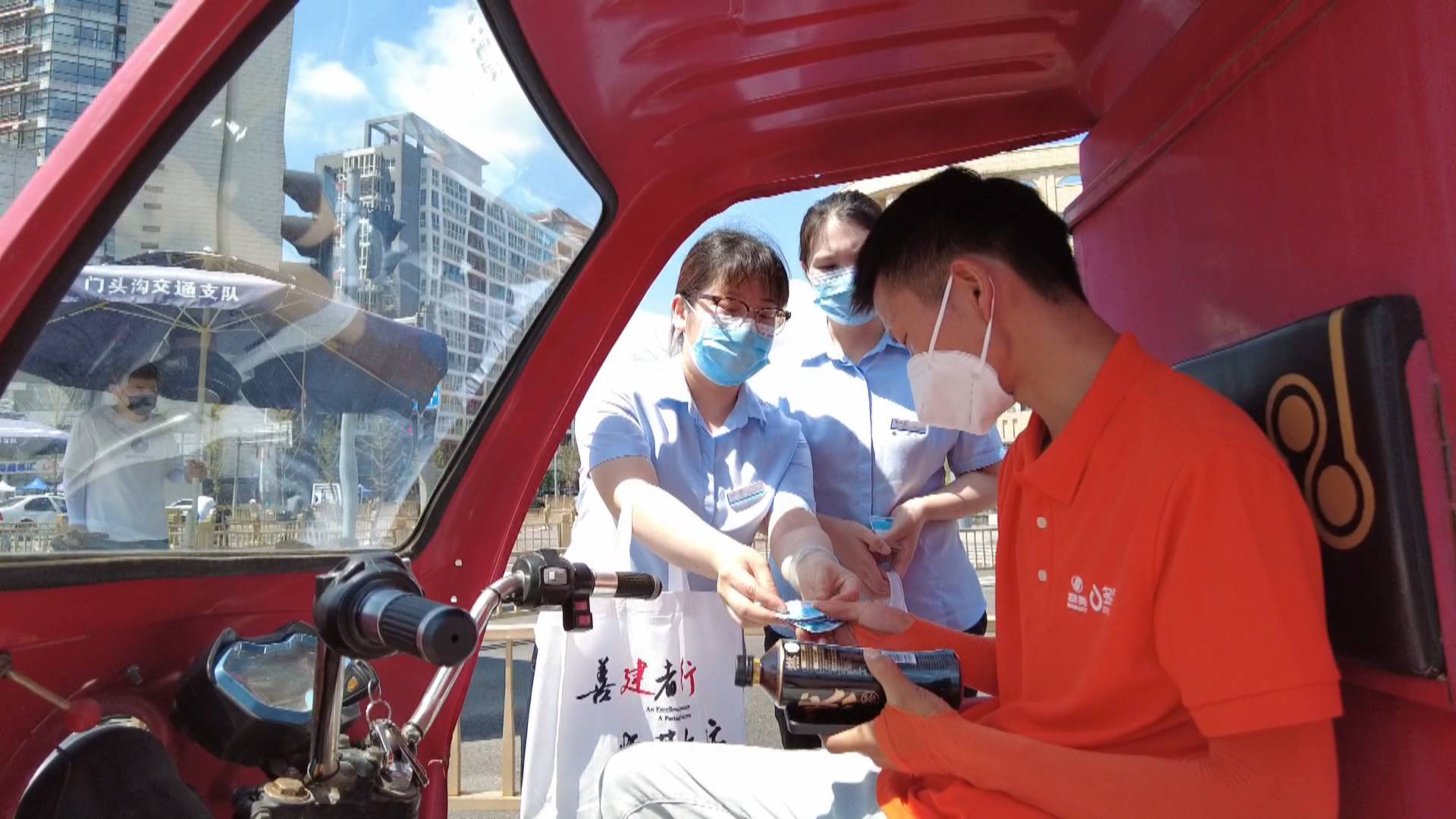 近日,建行北京门头沟支行延伸“劳动者港湾”服务半径,安排工作人员走上街头,给高温下坚守岗位的交警、辅警、志愿者、环卫工人和快递外卖小哥送上解暑饮品和口罩,为户外工作者带去清凉和关怀。
