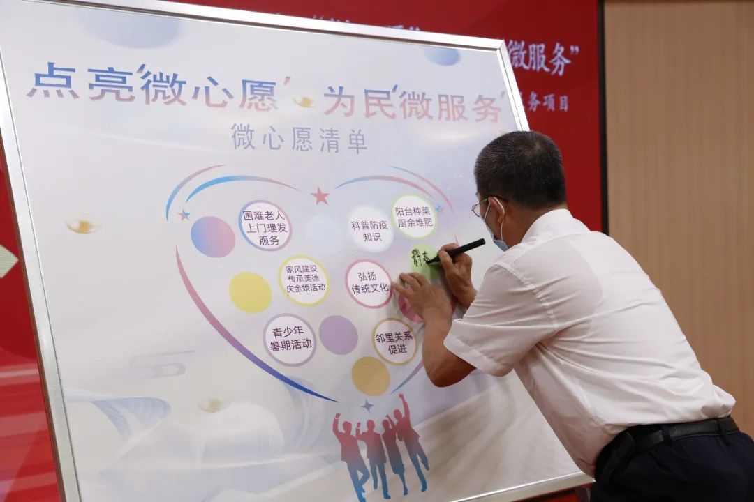 “我今天认领的微心愿是弘扬传统文化,希望可以向更多的居民传播中医理疗知识。”“我认领的是困难老人上门理发服务”......在认领仪式上,各社区志愿者代表有序上台,分享各自认领的微心愿。