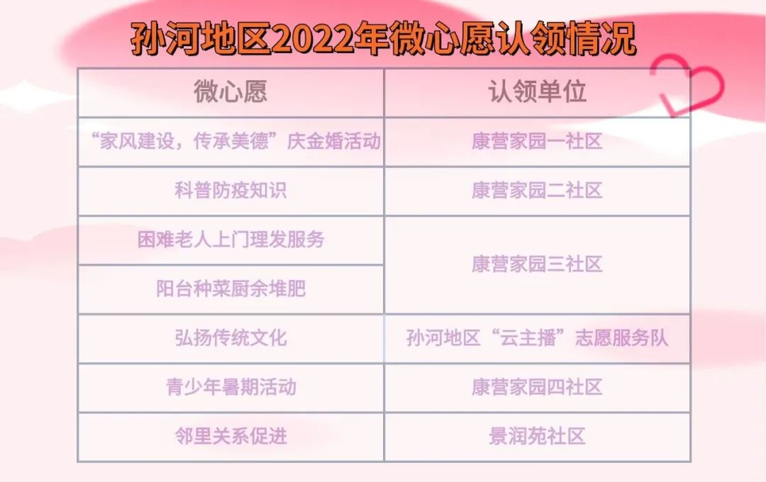 据了解,经前期广泛征集,走访调研,确定了孙河地区2022年7个将要落实的居民“微心愿”,分别被6个单位认领。