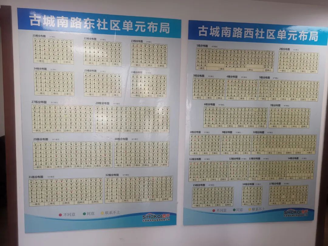 根据居民意愿制定了改造明细图,以四种颜色区分改造情况,分别以红色代表同意改造,蓝色代表正在改造中,绿色代表改造完成,黑色代表不同意改造,通过深入的互动交流,将政策传达至每一户居民,形成思想上的统一,为完成上下水改造打下坚实的基础。最终,南路东社区上下水改造率高达84%,南路西社区上下水改造率高达82%。