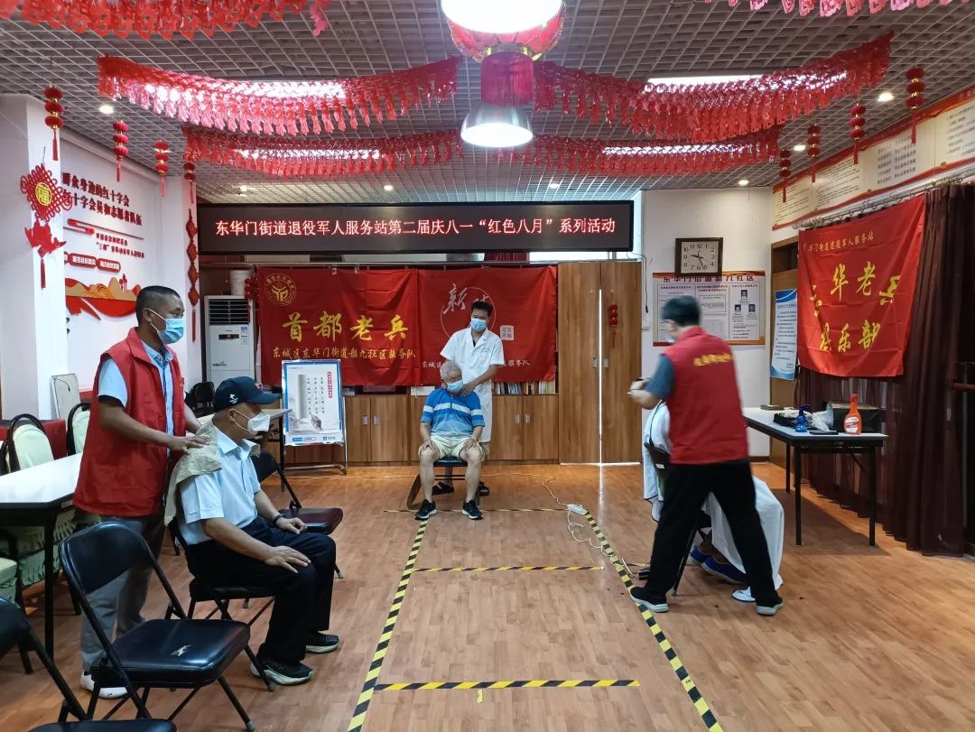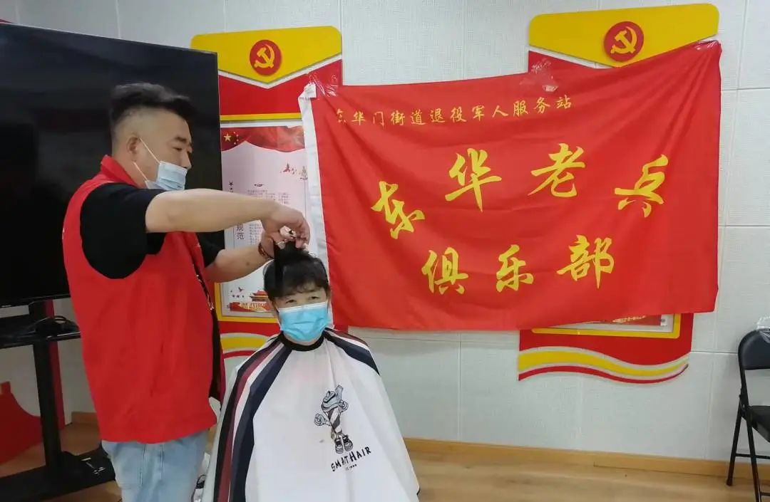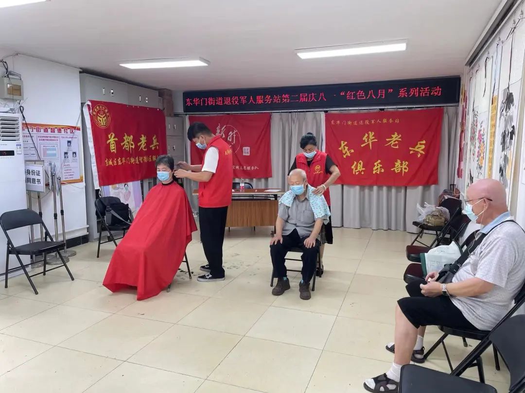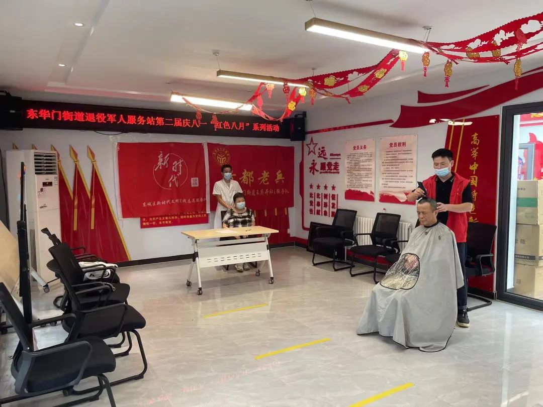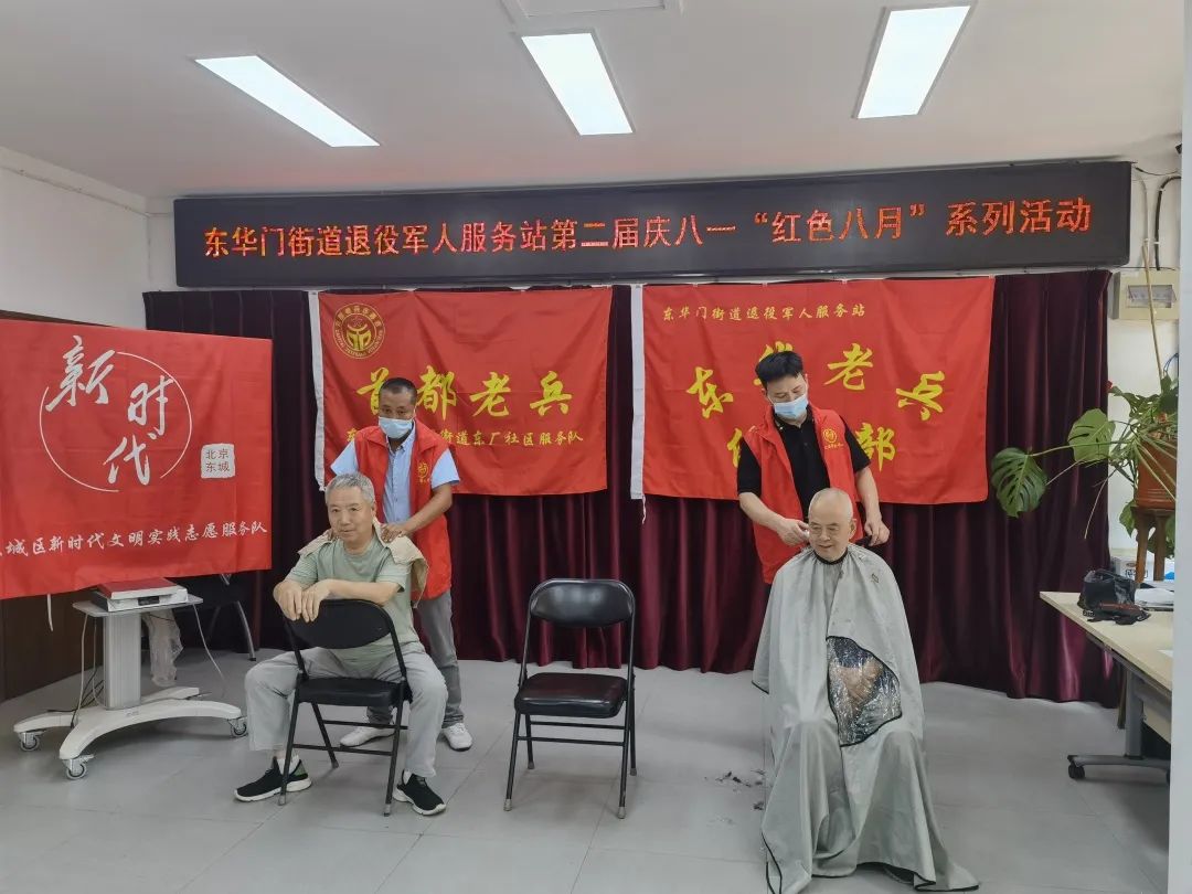 东华门街道10个社区同步开展活动,为辖区老兵们免费理发和按摩。兄弟帮扶中心的师傅们早早到场,用热情的态度专业的服务赢得了老兵们的一致好评。