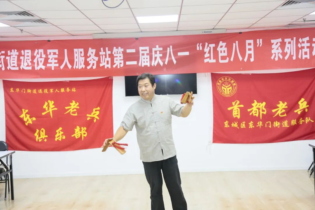 东华门街道退役军人服务站在机关食堂举办了庆八一“红色八月”系列的首场活动。街道办事处副主任蒋蕊,机关转业干部、社区退役军人、刚退役归来的年轻士兵和首都老兵志愿服务队队员等30余名辖区老兵参加了活动。