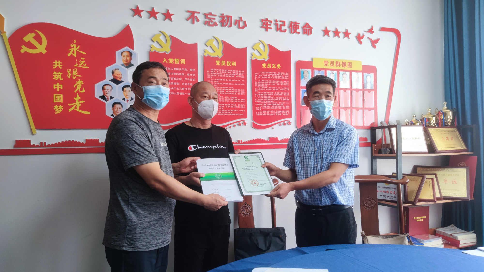 近日,流村镇黄花菜(干)通过中国绿色食品发展中心审核,被认定为绿色食品A级产品,北京市农产品质量安全中心绿色食品科和昌平区农业环境监测站的相关工作人员为北京市流村田园盛业农业专业合作社颁发黄花菜(干)绿色食品证书。