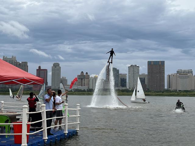 活动现场,摩托艇、水上飞行器、滑水板、帆板、帆船以及快艇观光等多个水上运动项目轮番亮相。乘着江风,摩托艇以最大马力在江中飞驰,水上飞行器在空中进行翻转和冲浪……一场“速度与激情”的表演,引得为观众中连连拍手叫绝。采访中记者了解到,活动现场多个水上运动项目对市民进行免费开放,吸引了数以百计的市民前来体验水上运动的魅力。活动还邀请了奋战在基层工作一线的医护人员、执勤民警及各界市民代表,对他们为城市发展所作出的贡献致以崇高的敬意。在尖叫声、呐喊声中,市民通过零距离参与,进一步了解水上运动,体验水上运动魅力。