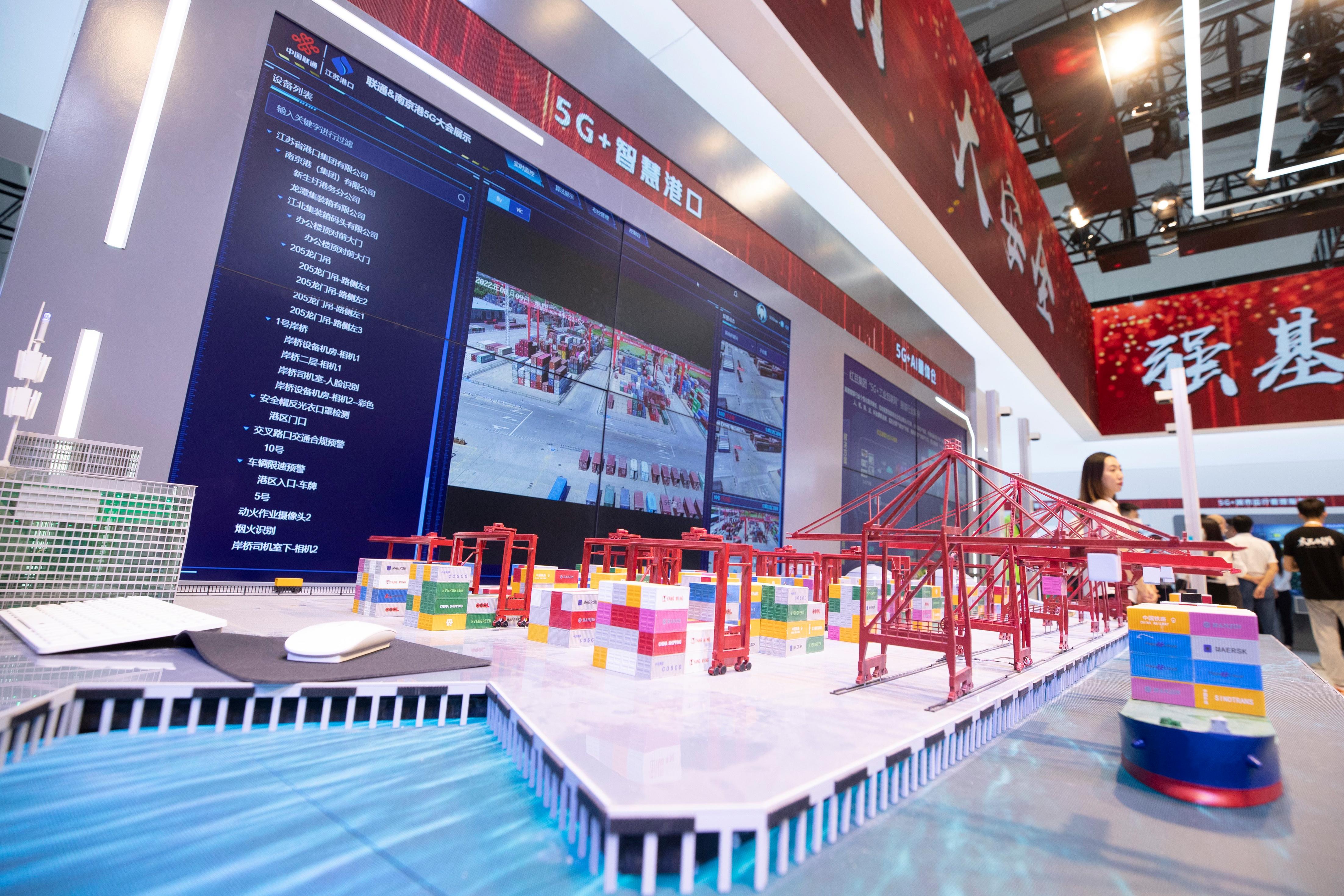 9日在中国联合网络通信集团有限公司展区拍摄的5G+智慧港口。
