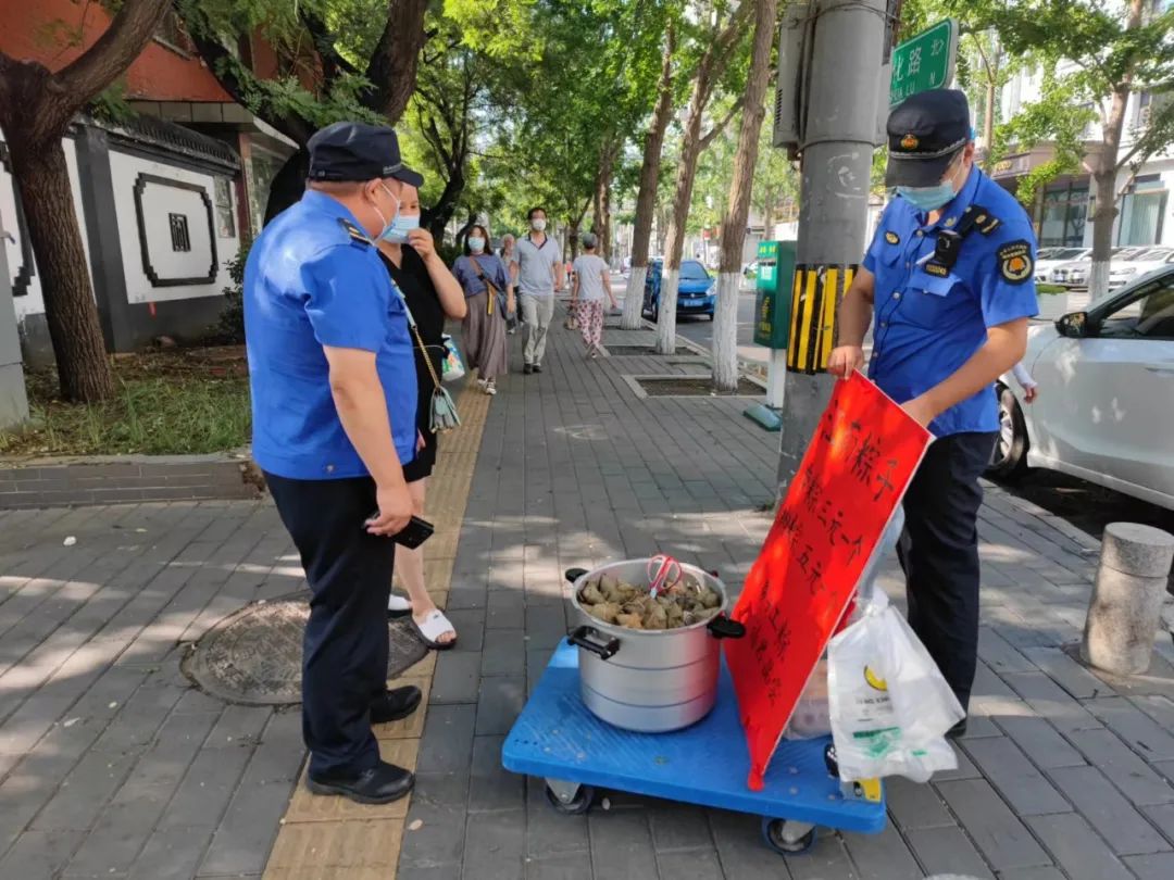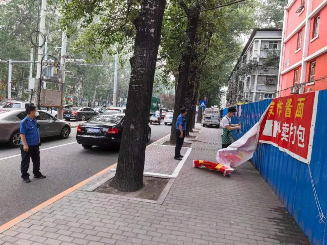 街道综合行政执法队对游商散贩、户外广告及店外经营、堆物堆料等“门前三包”问题现场执法,立行立改,确保辖区人居环境整治成效。