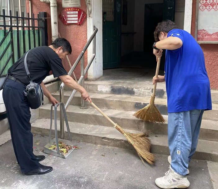 机关、社区工作人员拿起扫把、手持垃圾夹、铁锹、垃圾袋等工具,对区域内道路两侧绿化带、背街小巷、卫生死角、乱贴乱画进行全面清理。