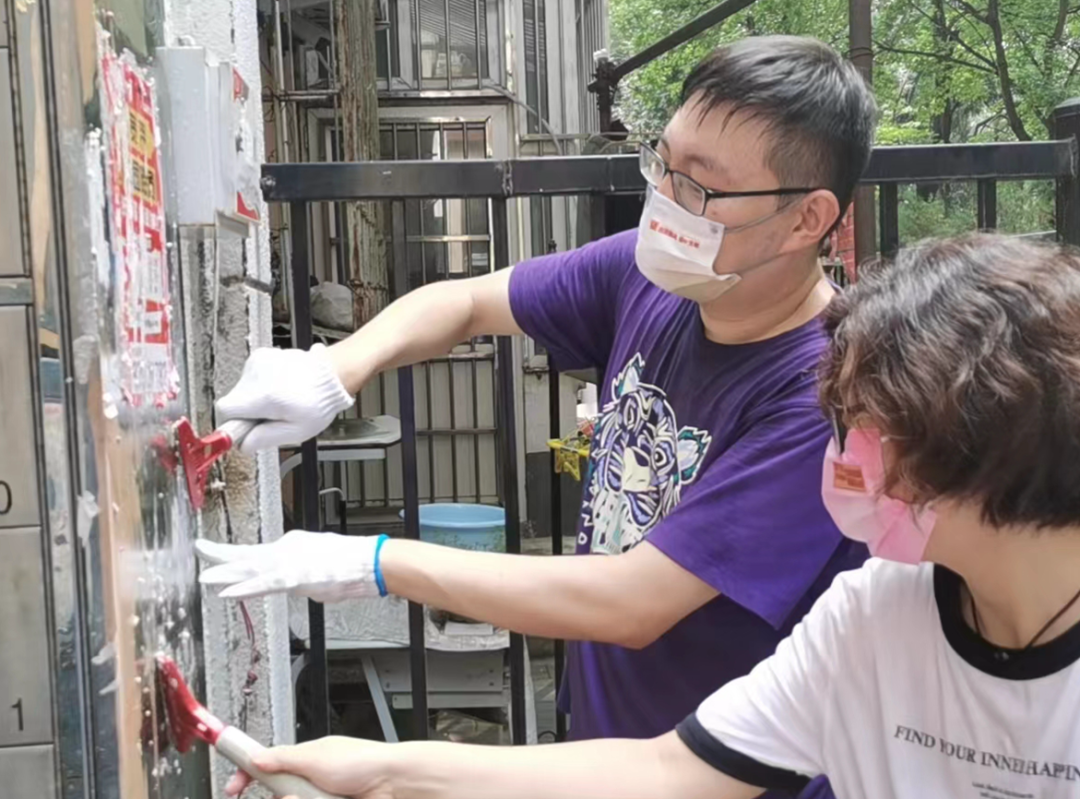 今天早上7:00街道全体机关干部、社区工作人员全员上岗,按照任务分工,严格对照测评标准,清理楼道堆物、清理整治电线、铲除黑广告、捡拾小区和街面垃圾,认真做好整治提升、宣传教育等工作,全力创建安全、干净、有序的辖区环境。