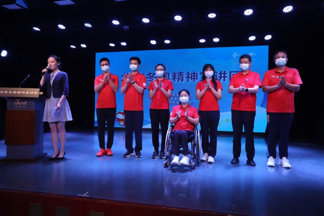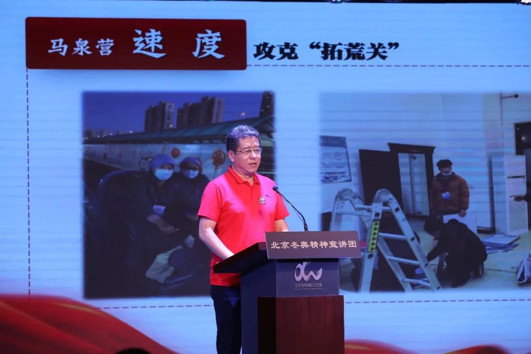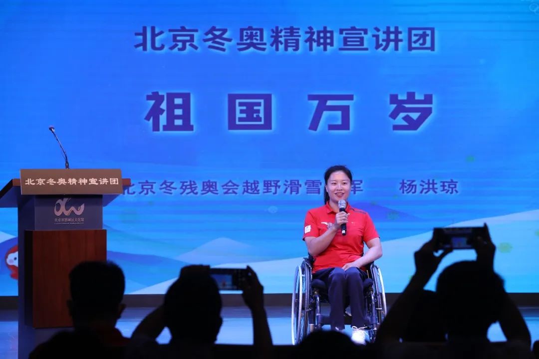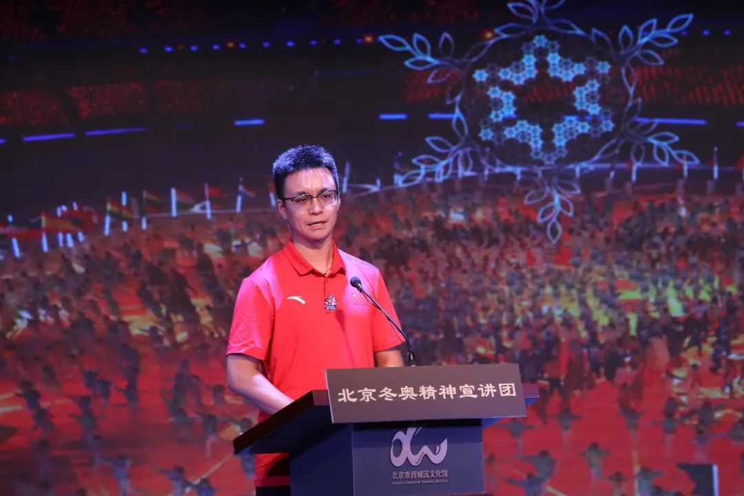 宣讲活动中,奥林匹克文化推广人、国际奥委会文化与奥林匹克遗产委员会委员、北京冬奥会火炬手侯琨,中央财经大学学生、北京冬奥会志愿者赵建铭,北京冬奥组委开闭幕式工作部演出策划协调处主管刘新华,北京市朝阳区双桥医院党总支书记杨顺利,国家速滑馆业务经理刘源洁,首钢园运动中心制冰师刘博强,北京冬残奥会越野滑雪冠军杨洪琼7名宣讲员声情并茂地讲述了他们在北京冬奥会、冬残奥会申办、筹办、举办过程中,支持冬奥、参与冬奥、奉献冬奥的亲历亲闻,多角度、全方位、立体式地为大家讲述鲜为人知的北京冬奥故事。宣讲员们真挚的情感和质朴的话语,感染着现场的每一个人。虽然他们年龄不同、性别不同、职业不同,但都有一个共同的特点,那就是他们的身上都生动体现了北京冬奥精神。