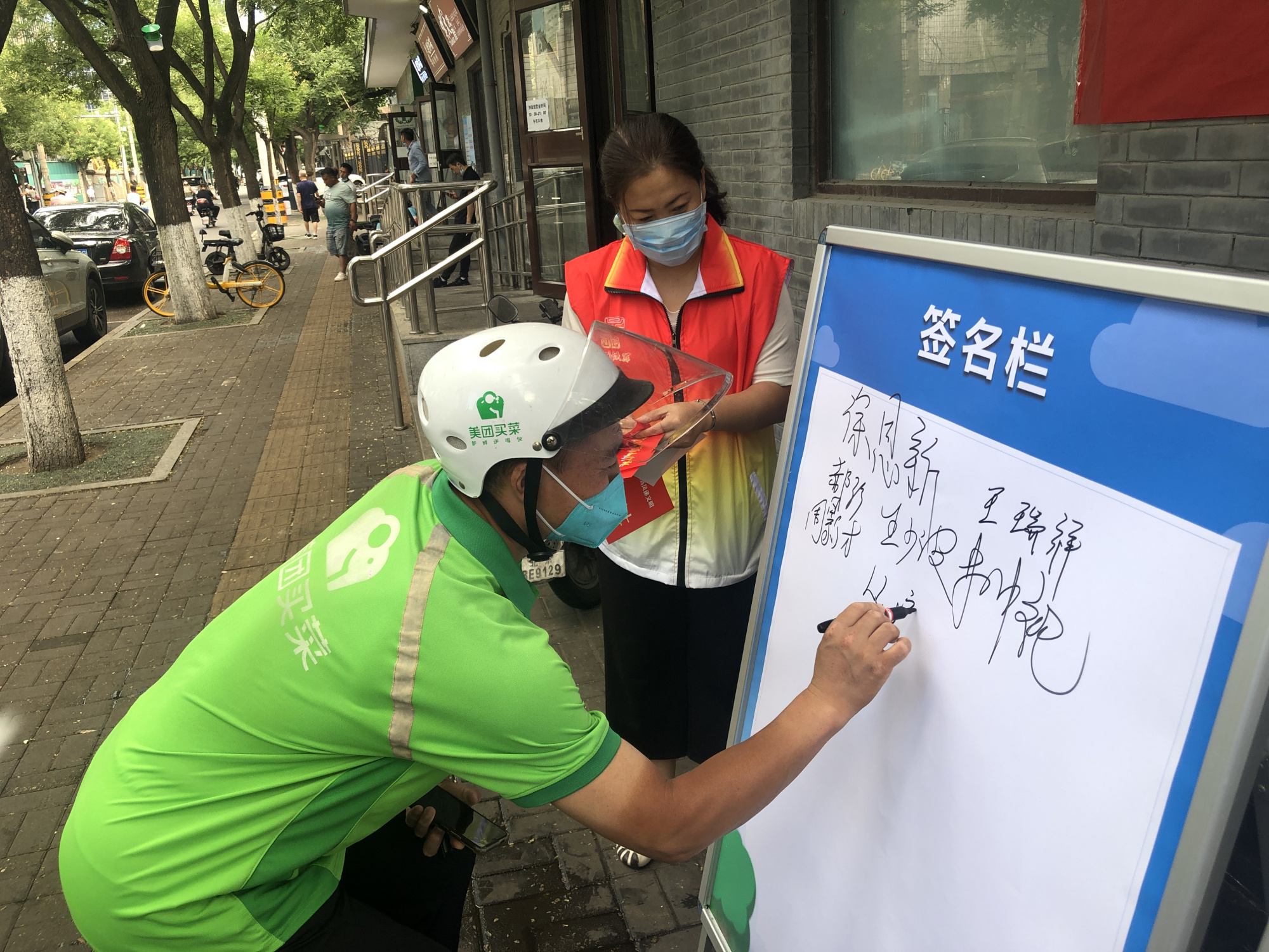 创建文明城区,全街人人有责。街道工作人员来到美团买菜永外店、顺丰永外百荣营业点开展创建文明城区宣传动员,向“小哥”们发放《做文明有礼永外人——致永外居民一封信》和《共创文明城区倡议书》。“小哥”们认真学习了解文明城区创建相关工作,现场签订《共创文明城区倡议书》。
