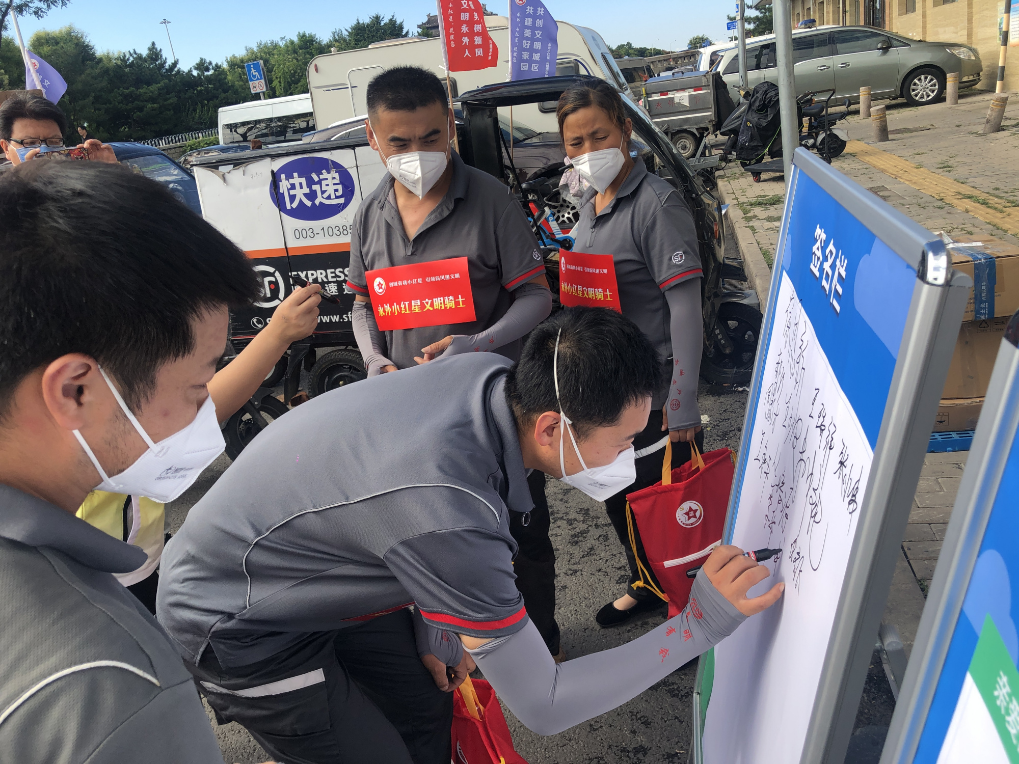 为了提高辖区居民的文明意识,促进文明行为养成,“小哥”们组成了“小红星文明骑士团”,在送货的同时,将《做文明有礼永外人——致永外居民一封信》发放给辖区居民,向居民开展“点对点”式文明创建宣传。