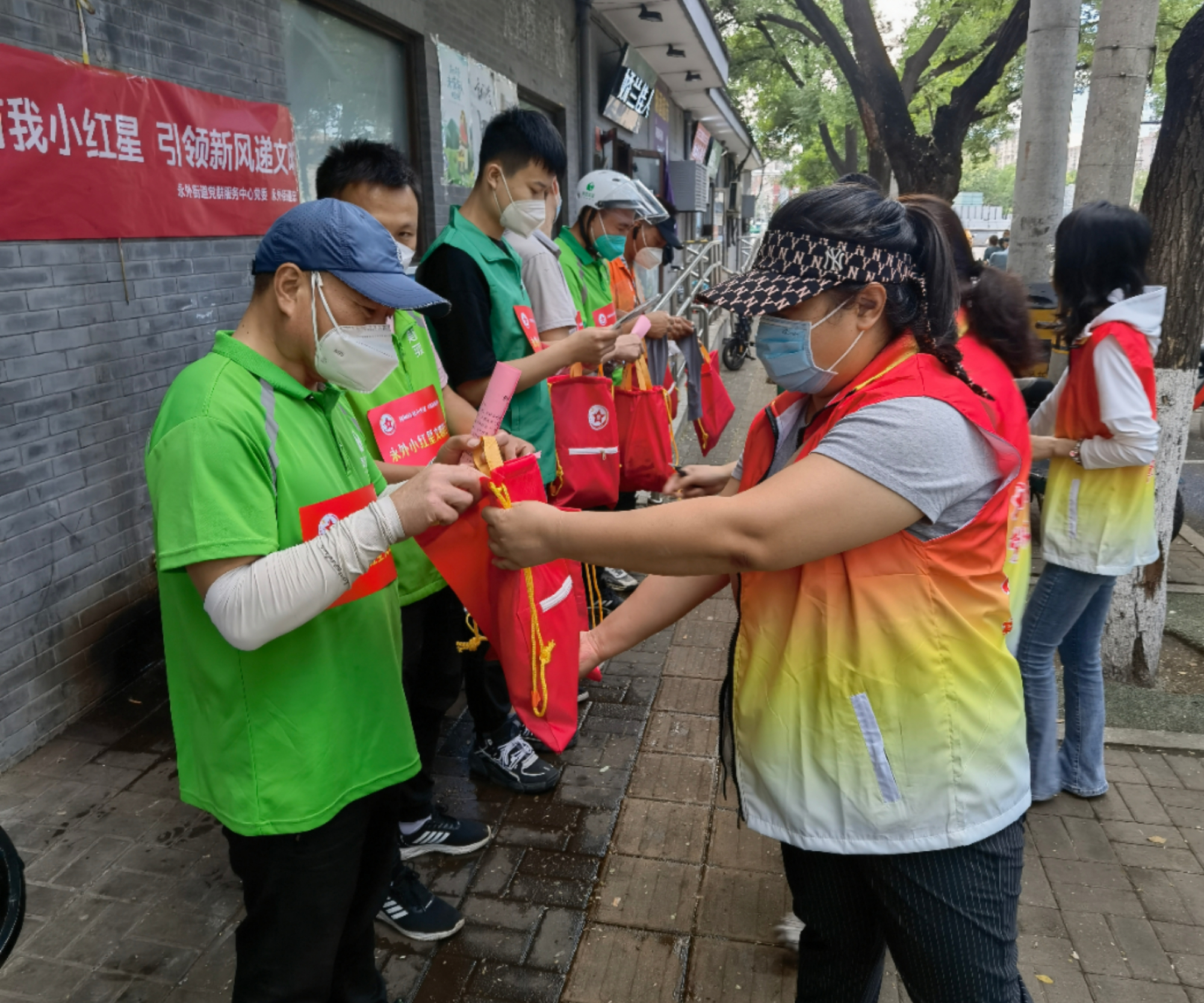 永外街道党群服务中心党委联合永外街道总工会,面向辖区新业态、新就业群体开展“创城有我小红星 引领新风递文明”活动,引导快递、外卖“小哥”积极参与文明城区创建工作,以“文明+”为主线,助力“星赋能”,强化“星奉献”,落实“星温暖”,持续推动“六星”工作走实走深。