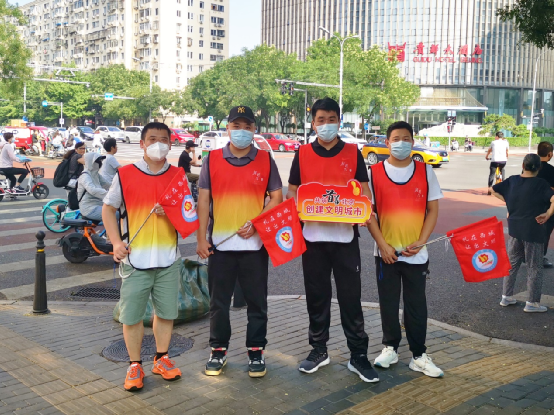 91科技集团分别于每日早7:30至8:30、晚17:30至18:30,各4名志愿者参与到路口值守志愿服务工作。
