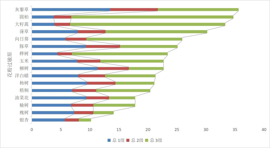 由于花粉在空气中飘散的特点,我国北方地区花粉浓度显著高于南方,因此季节性过敏性鼻炎的发病率显著高于南方,可达18.5%以上。引起季节性过敏性鼻炎的主要气传性花粉包括春季花粉和秋季花粉。秋季花粉多具有强致敏性,以蒿属花粉、葎草、藜科花粉、豚草花粉等为主。根据北京世纪坛医院为期3年的临床门诊数据分析,引起过敏性鼻炎最常见的夏秋季节花粉为藜科、蒿属、葎草花粉等。