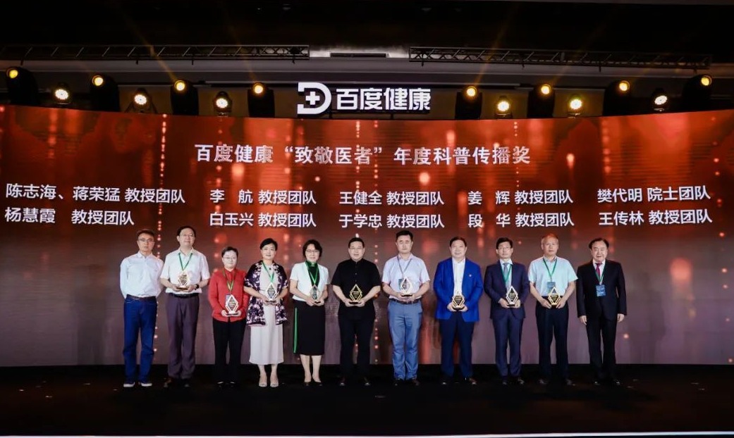 百度健康作为中国领先的健康平台,致力于全方位立体构建健康服务和科普阵地。百度健康“致敬医者”年度科普传播奖是基于百度大数据,以用户检索浏览量为维度的年度奖项,点击量较高的专家及团队得以入围榜单。