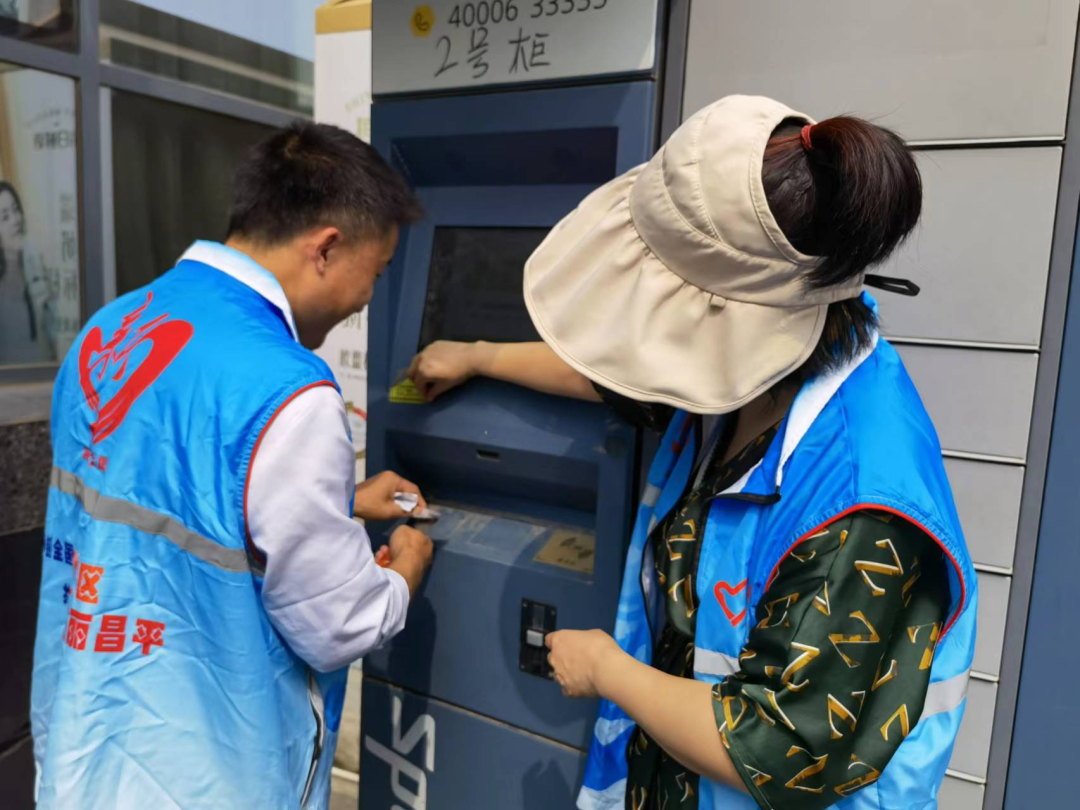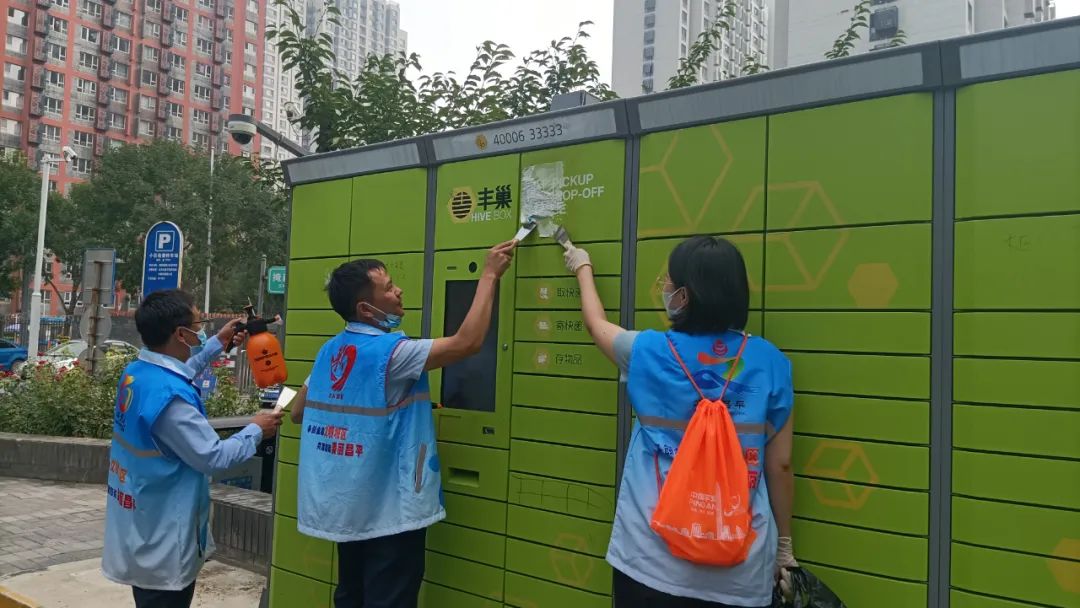 在对内部环境清除后,志愿者还到小区外围的快递存放柜查看,对张贴在机器上的小广告进行了清除。