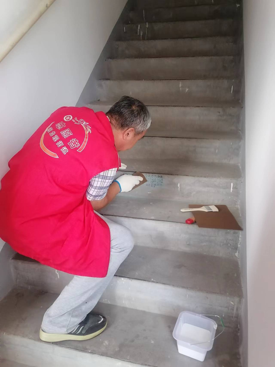 融泽家园三区社区的志愿者们清理了社区所有户外广告栏玻璃上污渍、以及小区各楼楼道内顽固的过期小广告、并对有污渍墙体进行了粉刷处理。大家不怕脏、不怕累,自觉分工、配合默契。