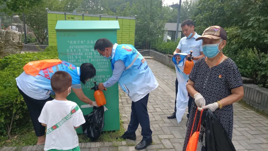炎炎夏日,融泽家园一区社区的志愿者们拿着铲子、喷壶、刷子、扫帚等工具,认真对顽固小广告进行处理。