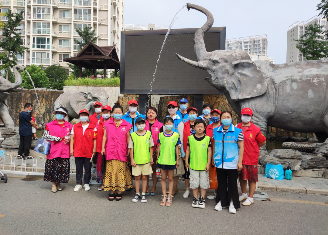 闷热的天气,伴随着树上的蝉叫,新龙城西区社区的志愿者们陆续来到社区集合地点“大象”门口进行签到,领取清理工具,穿戴好创城标志的马甲,自由组合,有序开展工作,逐个单元进行清理。
