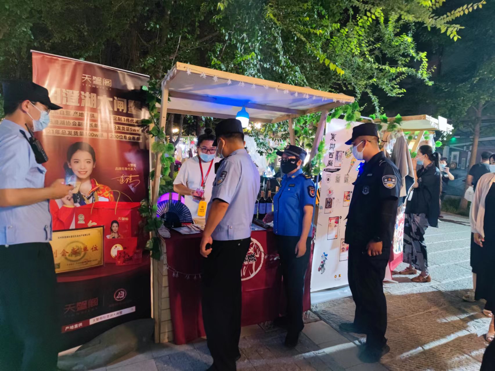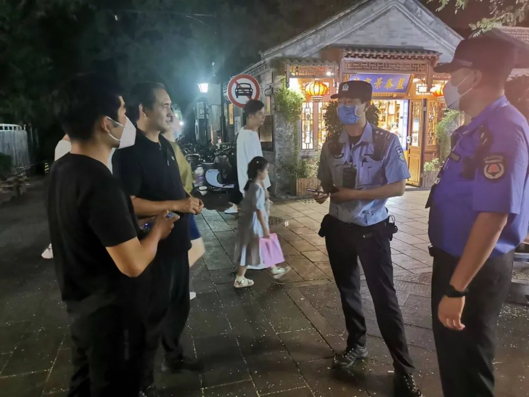 前门街道综合行政执法二队与公安部门持续开展并肩行动,检查前门大街消夏夜市安保、疫情防控措施、突发事件应对等重点项目。