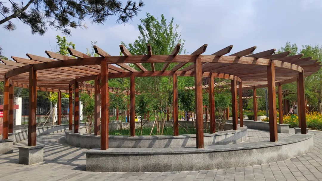 “憩园在最初改造时,园内绿化良好,但铺装破损,可供市民休闲的空间不足,服务设施欠缺,南北两入口人车混行,安全隐患大,亟待提升。”负责此次改造建设的实创总公司相关负责人介绍,此次改造,从入口、广场、设施、园路、景观等方面入手,通过优化园区流线和活动空间,更新园路铺装,增加人车分行和无障碍通道,增设座椅、儿童沙坑、健身器材等基础设施,增植花灌木和地被花卉等绿植,为居民创造了安全舒适的交流和休闲空间,实现“三季有花、四季有景”的景观效果,在兼顾美观与实用性的同时,满足周边居民休闲、娱乐、健身的需求。