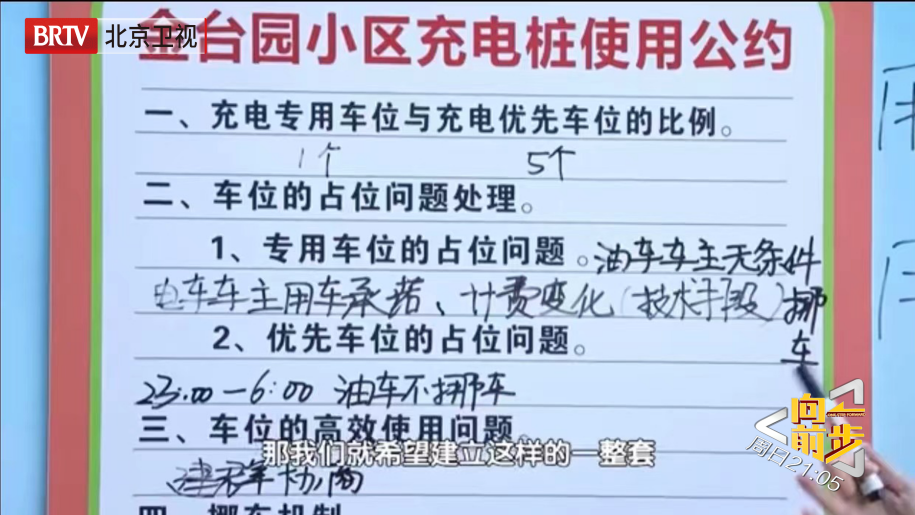 小区车位132个,登记私家车936辆,日常停车300辆,物业管理形同虚设。“车”与“位”的失衡、失控,才是燃油车车主拒绝安装公用充电桩的真实原因。如果安装充电桩,安装多少合适、充电车位是专用还是公用、电车油车谁享有优先使用权、如何保证双方权益得到公平对待?录制现场,车位纷争升级为老旧小区共治共建问题。新事物与旧规则究竟如何破与立,谁才是建立新秩序的绝对主角?