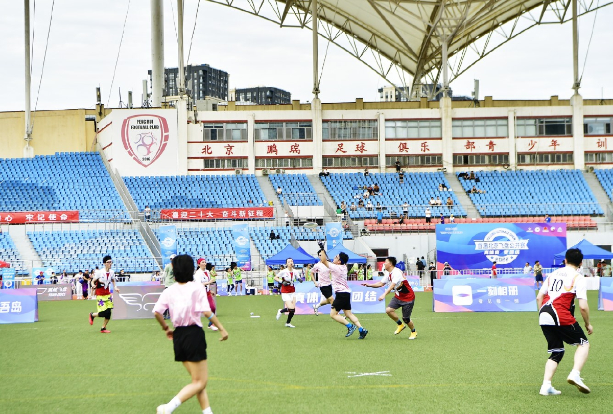 公开赛上,一张张飞盘传出,在副中心蔚蓝的天空中滑出一道道优雅的弧线。