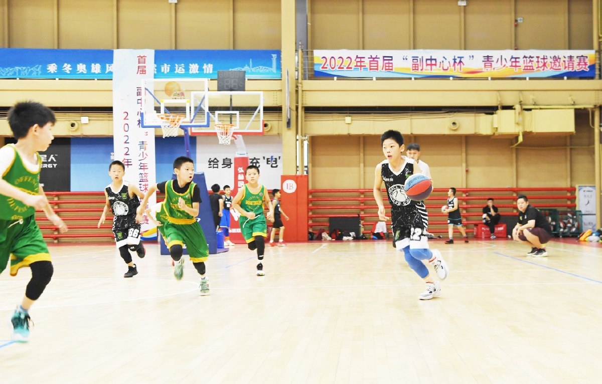 副中心各学校、篮球俱乐部的运动员齐聚一堂,在球场上热血拼搏。