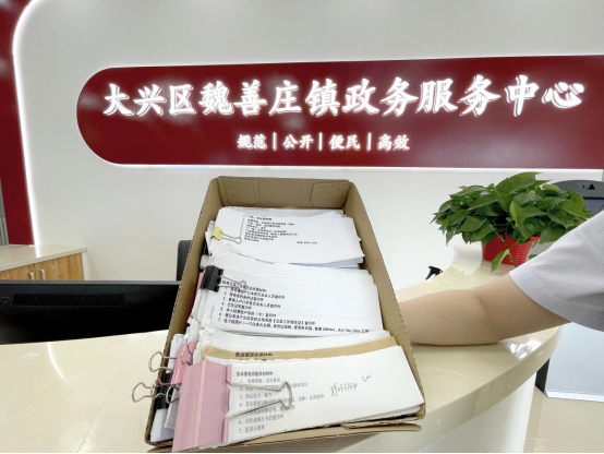 新迁建的魏善庄镇政务服务中心位于龙善大街,地处魏善庄镇核心区北部,临近周边居民社区。在服务中心大厅,每个综合窗口都有服务评价系统,工作人员还为村民准备了“一次性告知单”,明确标注不同事项所需的材料。“如果有听障村民前来办事,大厅配备了设备,可连线专业手语老师进行翻译,协助其办理事务,另外还有无障碍洗手间、母婴室、雨伞等为需要的村民提供服务。”魏善庄政务服务中心运营工作人员介绍。
