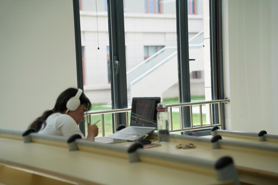 8月29日一早,党委常委、副校长宋敏在丰台校区图书馆对学生在线学习状况进行检查