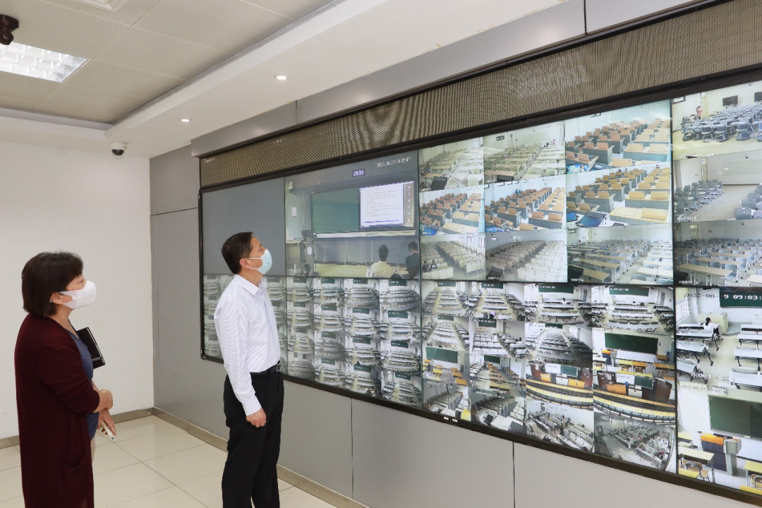 党委副书记、校长郭广生在海淀校区文华楼监控室进行线上教学秩序检查