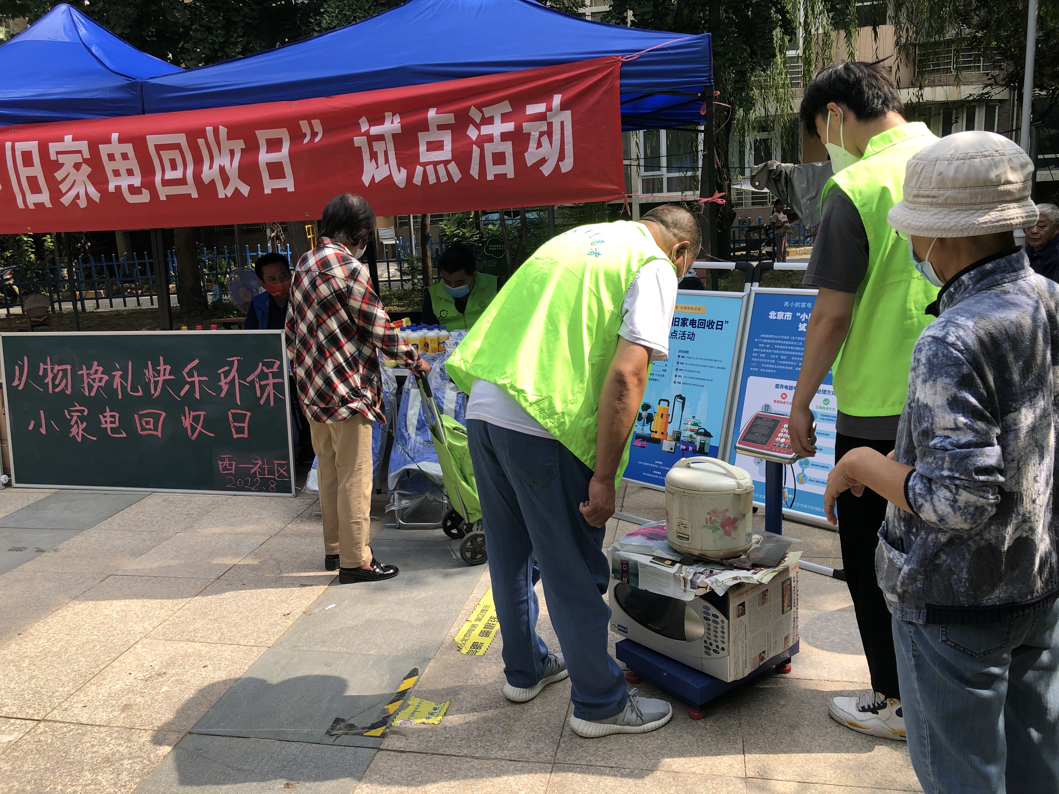 活动当天,社区居民纷纷将家中长久闲置的手机、饮水机、微波炉、电饭锅、破壁机等闲置废旧家电拿到现场,社区工作人员和志愿者们分工合作,帮助居民朋友们逐一登记、称重计量,继而获取积分兑换等价的日用品。现场安排专业人员为居民讲解废旧家电回收处理的相关知识,例如废旧电器如何分类、如何区分有毒有害物质与可再生资源等,让居民更加深入地了解不正规处理废旧家电对环境产生的危害,鼓励居民关注生态环保,积极践行垃圾分类行动。活动结束后,工作人员组织居民填写了调查问卷,收集汇总居民对于回收活动和垃圾分类的意见建议,本次活动共计兑换闲置废旧家电30余件。