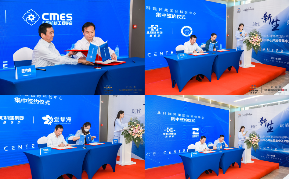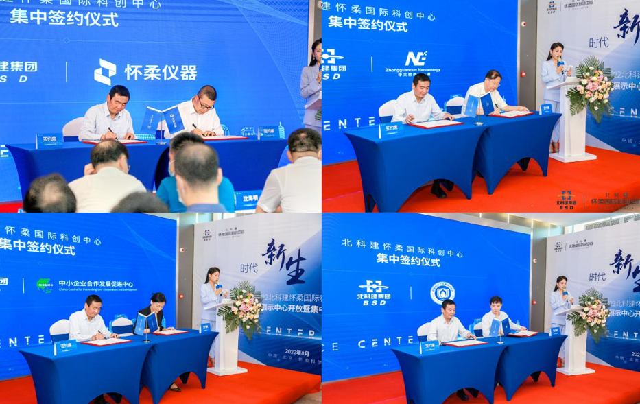 在剪彩仪式之后,北科建怀柔国际科创中心与北京怀柔仪器和传感器有限责任公司进行正式签约,将共同打造高端仪器及传感器产业基地,推动产业生态圈建设;与北京中关村微纳能源投资有限公司正式签约,将共同打造创新标杆型产业孵化服务平台,推进科技成果高效转化,并与上海爱琴海商业集团股份有限公司正式签约,双方将联合打造集中式商业购物中心,丰富区域商业配套。