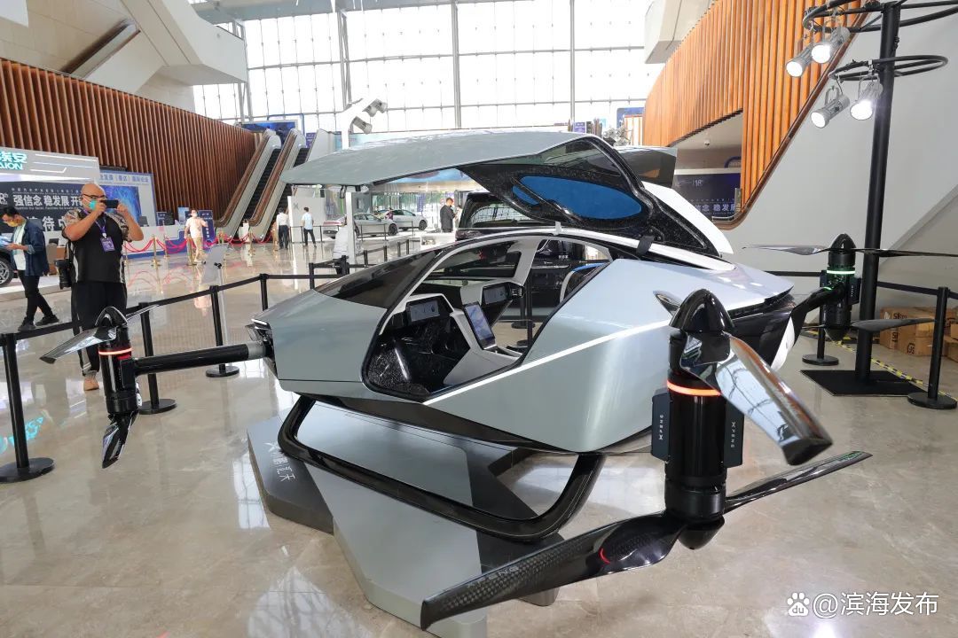 9月3日,2022中国汽车产业发展(泰达)国际论坛在滨海新区举办,一款电动飞行汽车在一楼展厅一经亮相,迅速吸引参会人员注意。