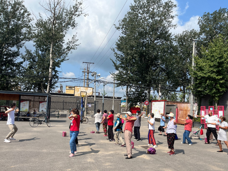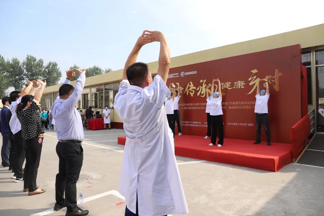随后,来自北京中医药大学东直门医院和甘棠社区卫生服务中心的医师,为在场人员演示了养身操《八段锦》。