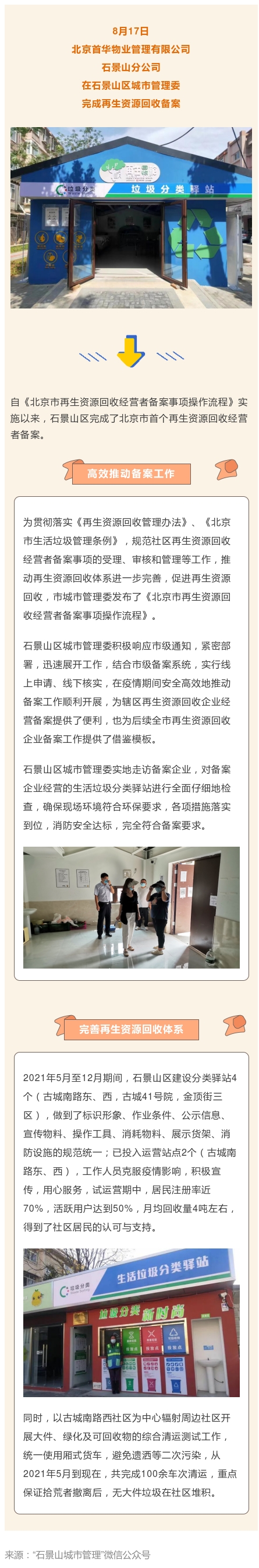 石景山区推进资源回收企业经营备案
