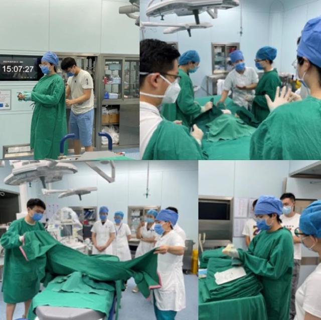本次培训采取“小班制”精准教学,针对不同级别住院医分期分批进行了培训考核。8月底已完成针对儿外科学专业基地新入培住院医师及研究生的手术无菌操作一期培训工作。培训内容包括:刷手、穿脱手术衣和无菌手套、铺巾等术前准备的无菌操作。培训邀请了神经外科副主任医师吴明星讲解相关基础理论,并由手术室主管护师姚涵进行演示操作。在参培学员进行实际操作练习后,由培训老师进行考核并逐一讲评。参培学员全员达标,大家表示通过本次培训不仅系统学习了手术相关无菌知识,而且通过实践操作进一步加强了外科相关无菌观念,受益匪浅。