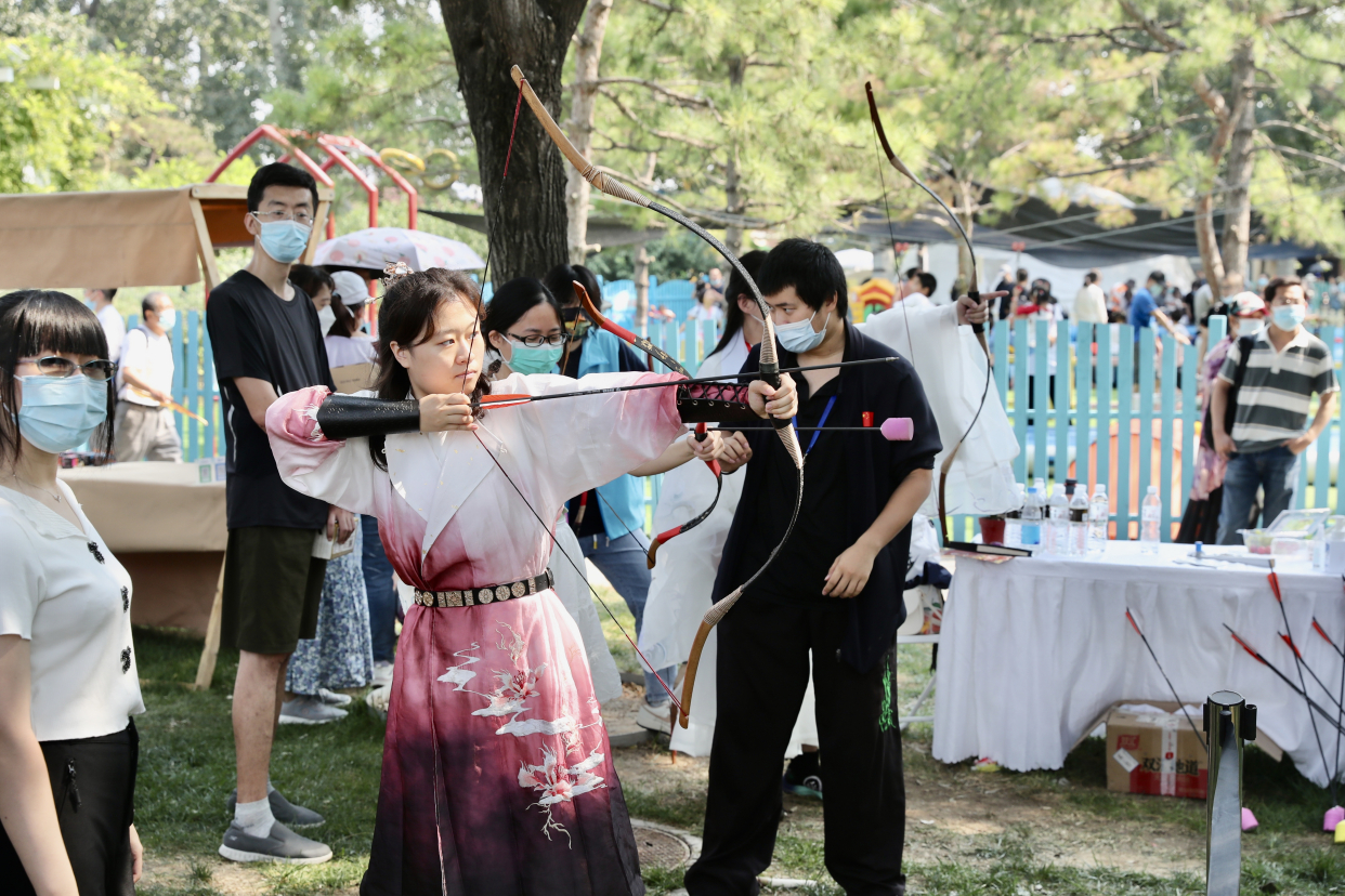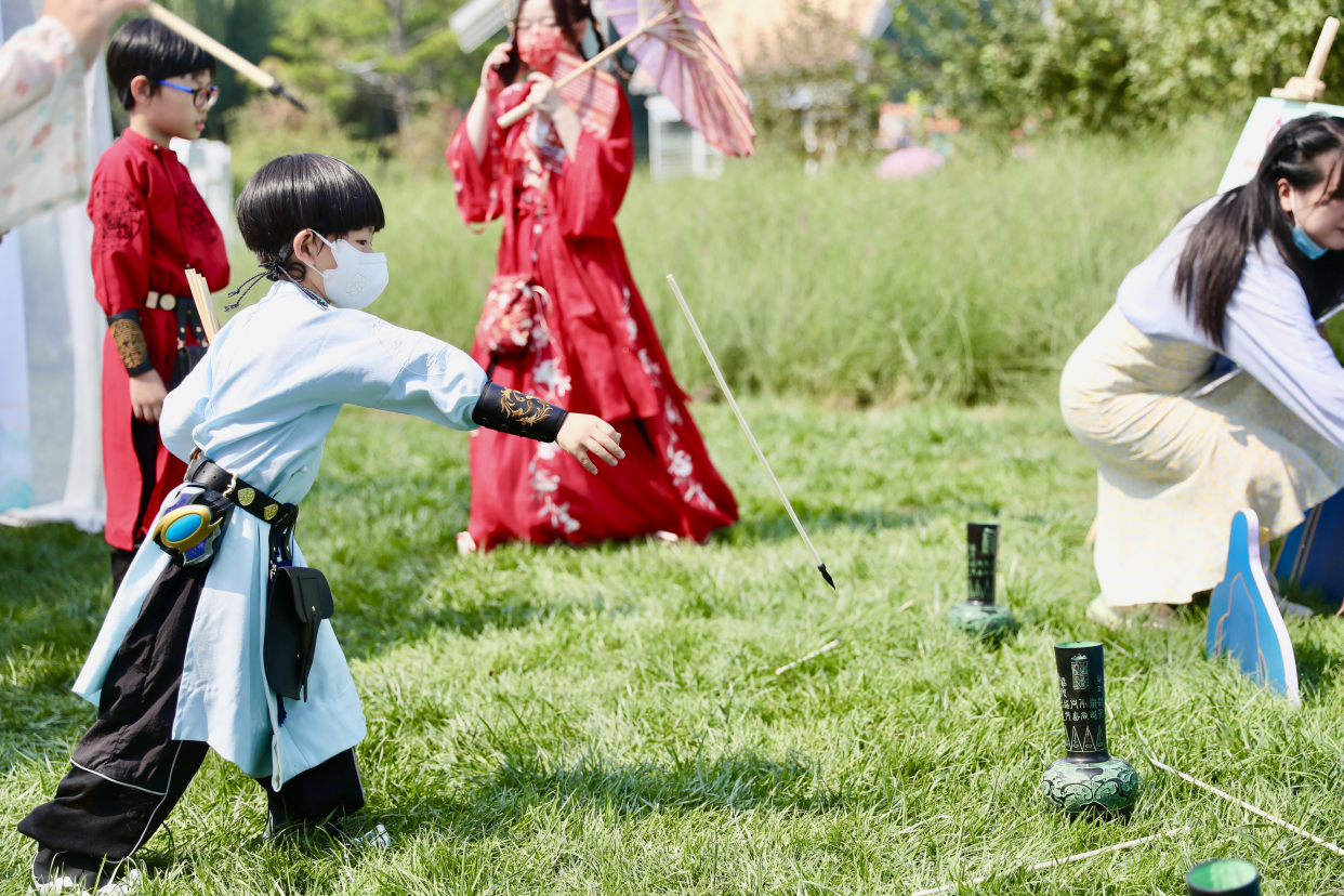 喜欢运动的游客可以体验国风运动会活动,蹴鞠、空竹、投壶、捶丸木射,蕴含了仁义礼智信的文化精神。