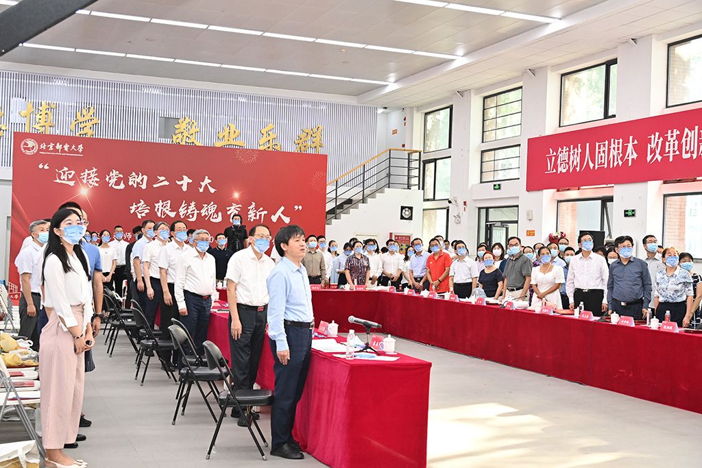 国家级教学名师奖、国家杰出青年基金获得者、全国高校黄大年式教师团队负责人纪越峰教授领誓,全体新入职教师代表庄严宣誓,将《人民教师誓词》刻在心间。