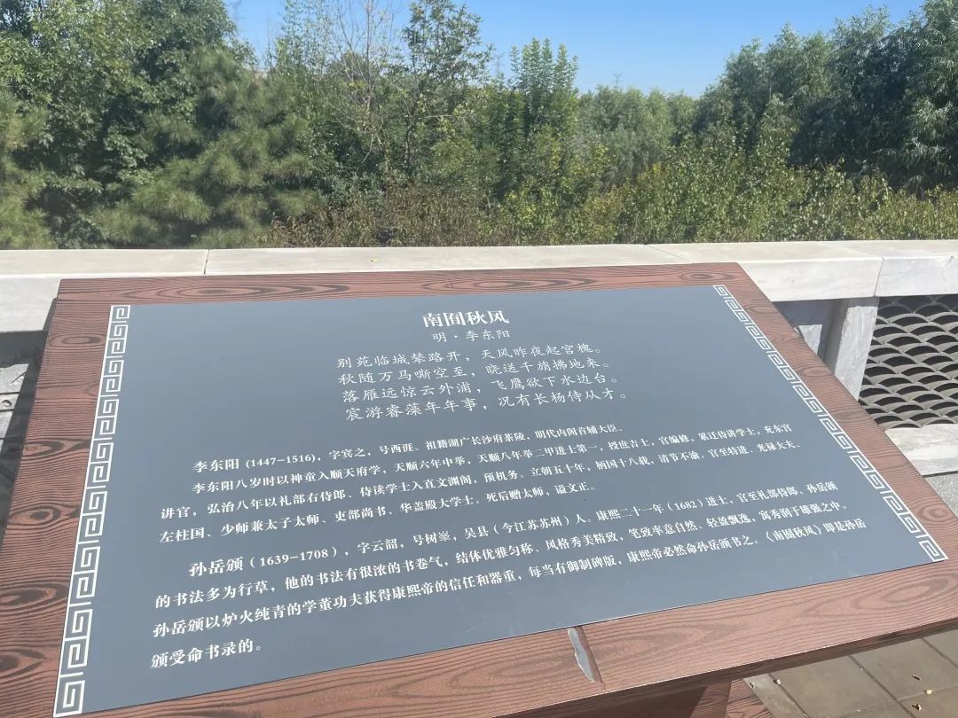 迎面一块风水石,上刻清朝早期名臣张英的《南苑赋》,对南海子(南囿)有着生动的记载。