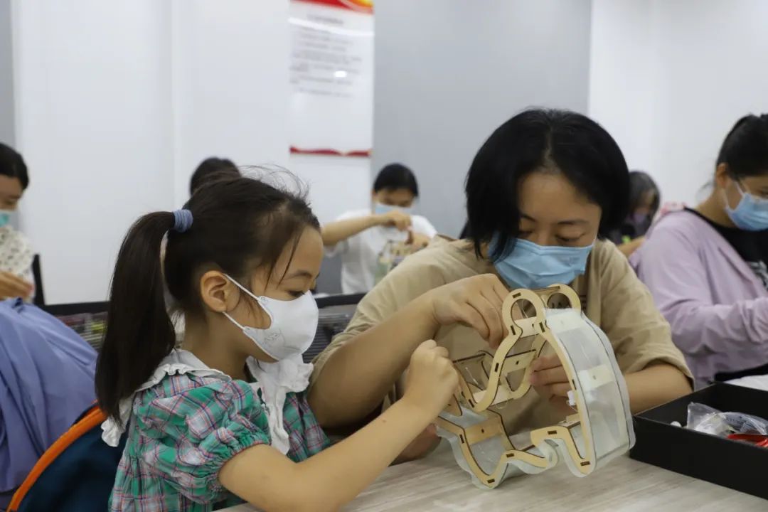 大家各自选择自己感兴趣的项目,体验游玩,现场气氛热烈营造了欢乐祥和的节日氛围。参与活动的阿姨说道:“这个花灯我孙女非常喜欢,等不及和一家人看圆月吃月饼了。”