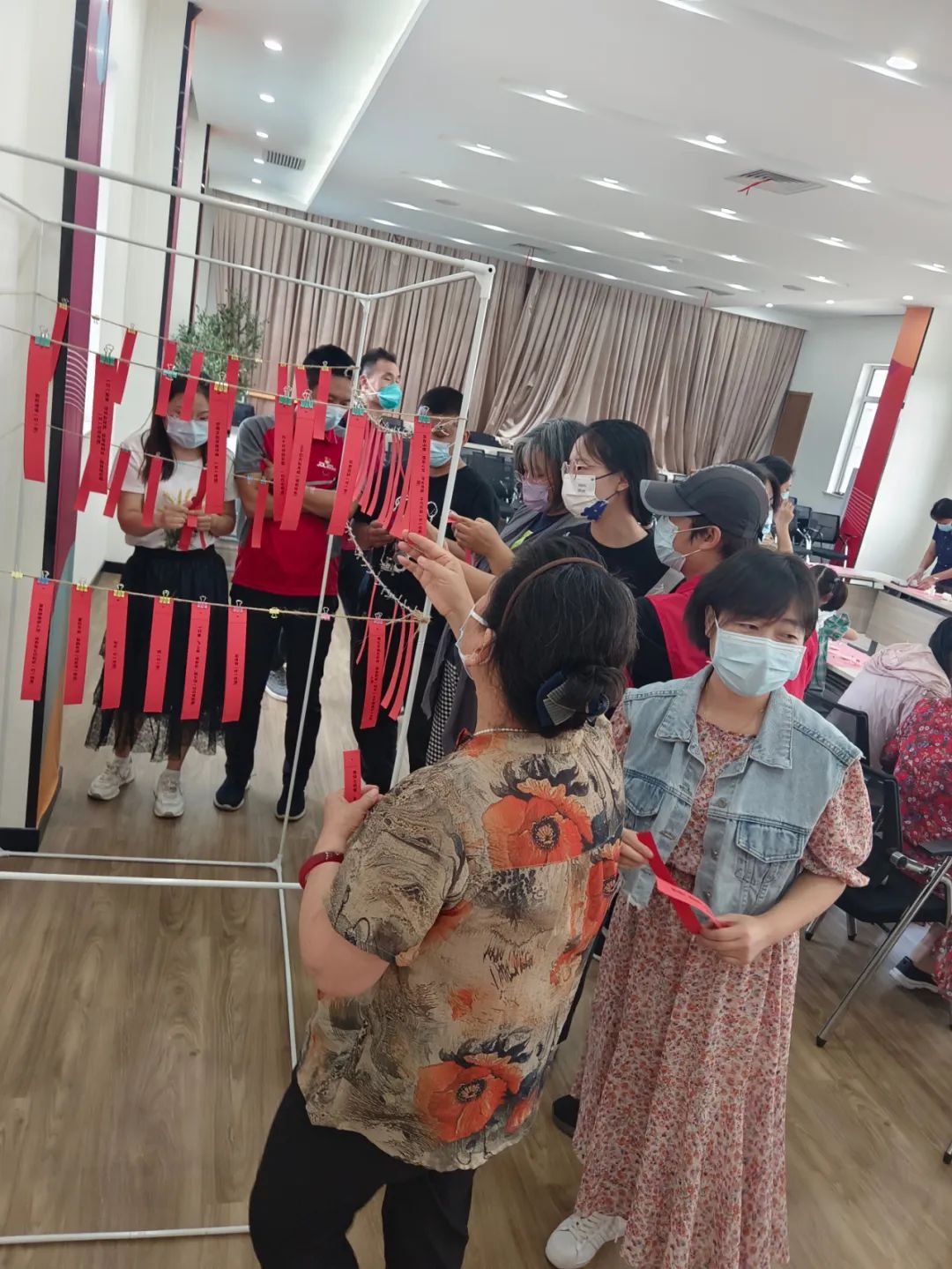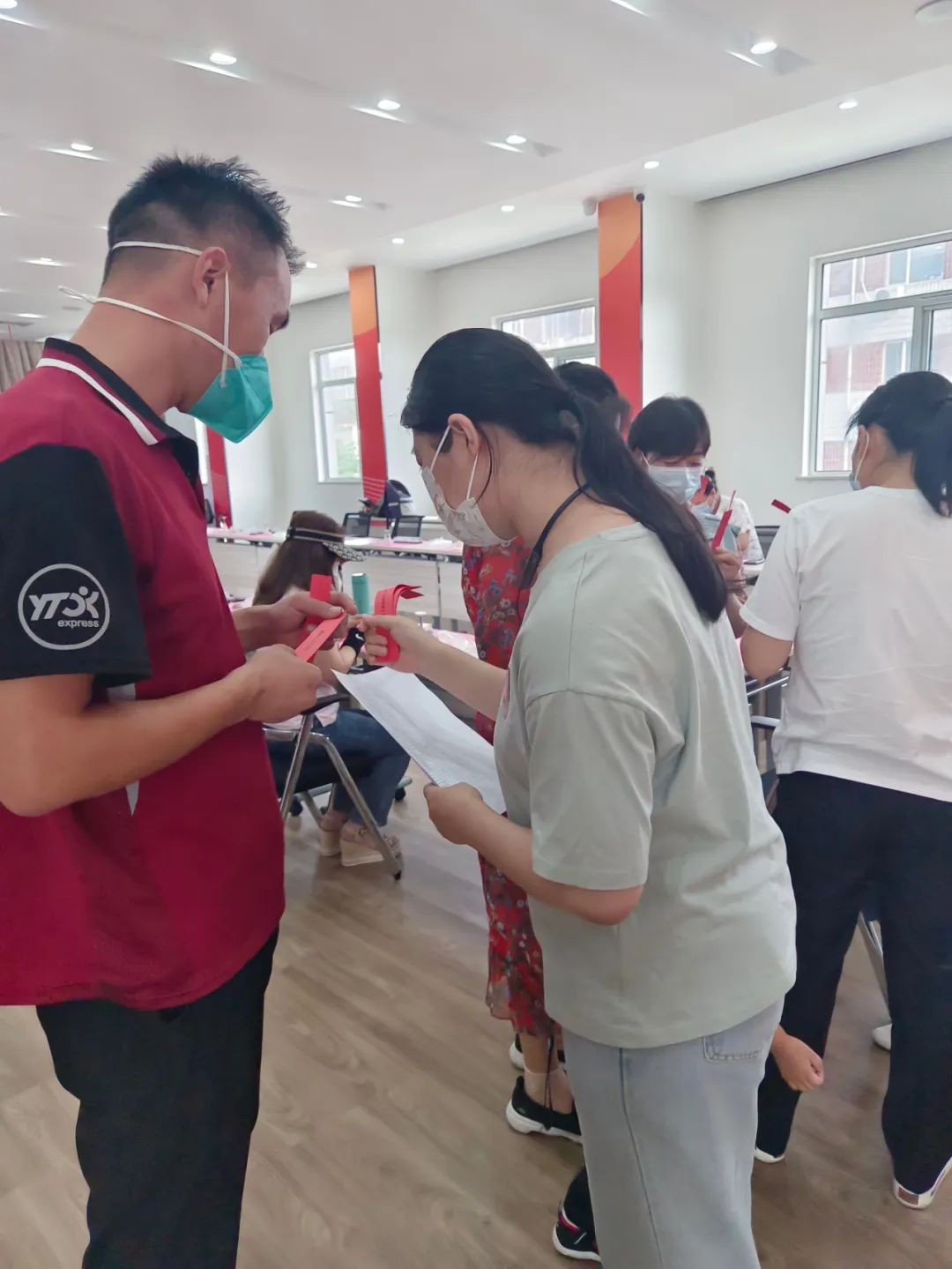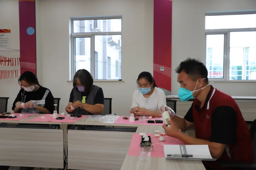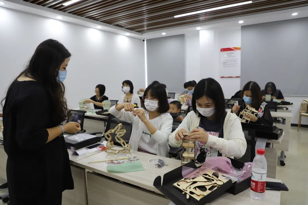 来自圆通快递、京东快递的快递员,商务楼宇的党建指导员都沉浸其中,一丝不苟地认真制作,成品越来越好,一个赛一个美观。