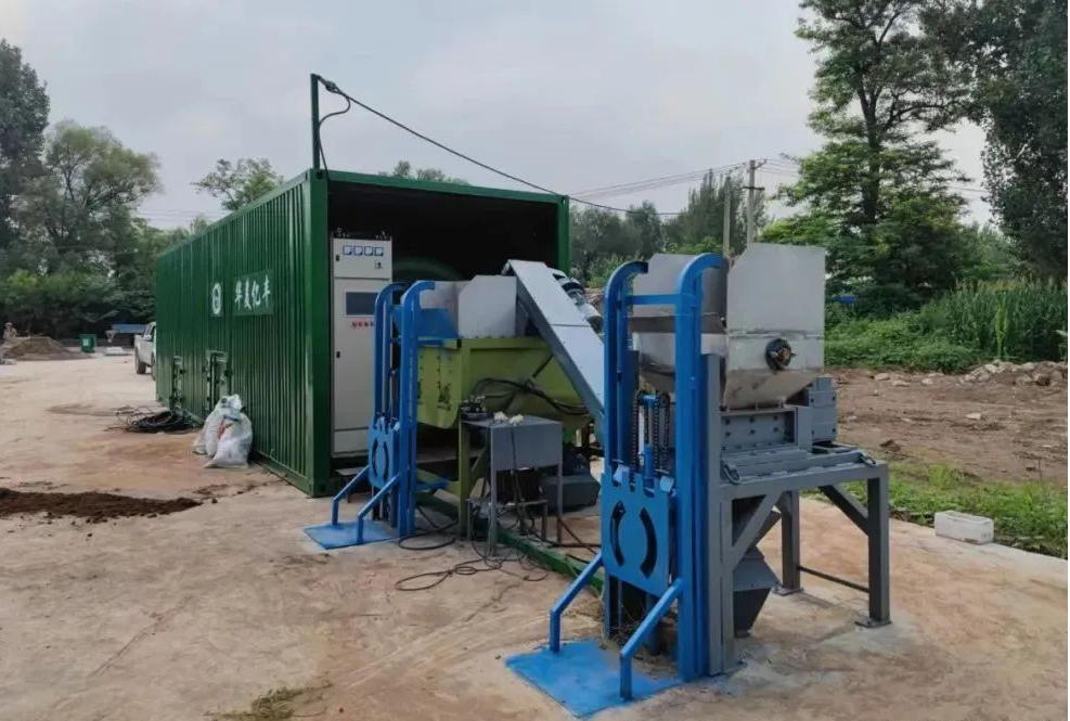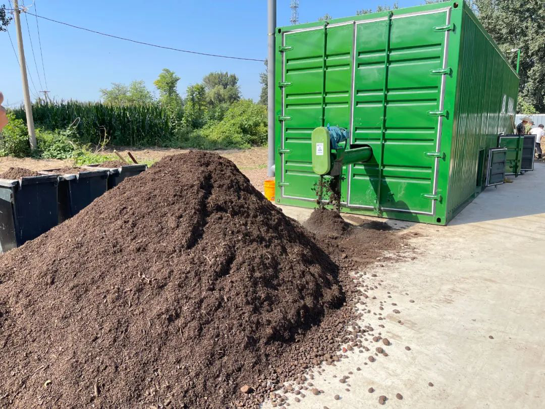 在高丽营镇一村有机物全量化处理现场,记者看到日常生产生活中产生的秸秆、树枝、动物粪便等被放进全量化处理机器的槽筒料口进行破碎处理,形成细料后,再与生物菌剂按照一定比例混合并输送进发酵处理机。其中的好氧微生物减少了恶臭气体的产生并增加了物料的养分含量。物料在设备内经 5-7 天发酵后达到无害化,既可作为土壤改良剂直接使用,也可用以进一步生产苗床土和生物有机肥。